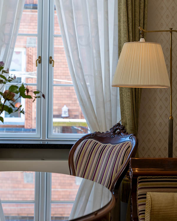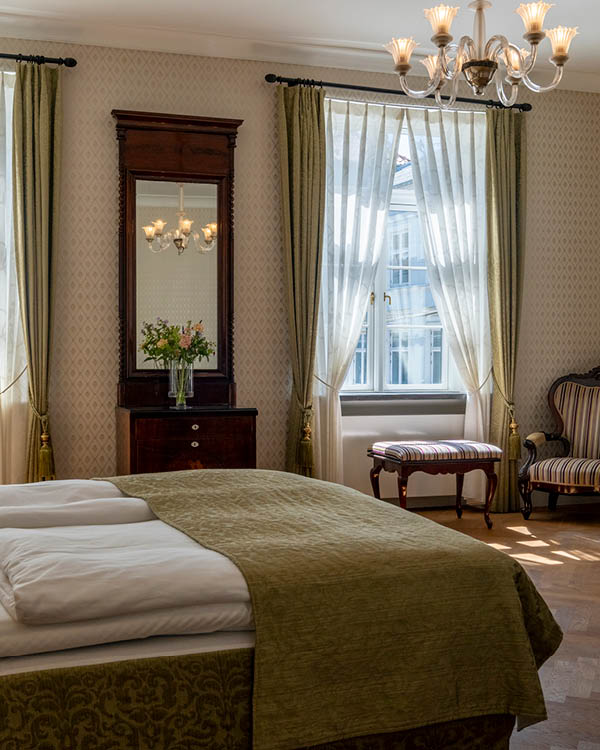 Welcome to 111 The Kings Room! The room is one of our three antique rooms located on the first floor. Both King Christian IX and his Queen Louise, and later King Christian X and Queen Magrethe II, have visited the room over the years. It was also the favorite room of the Danish pianist and entertainer Victor Borge. The furniture was purchased at auction by the hotel's former owner Wilhelm Mathisen, and has been renovated with reverence for the 19th century style.