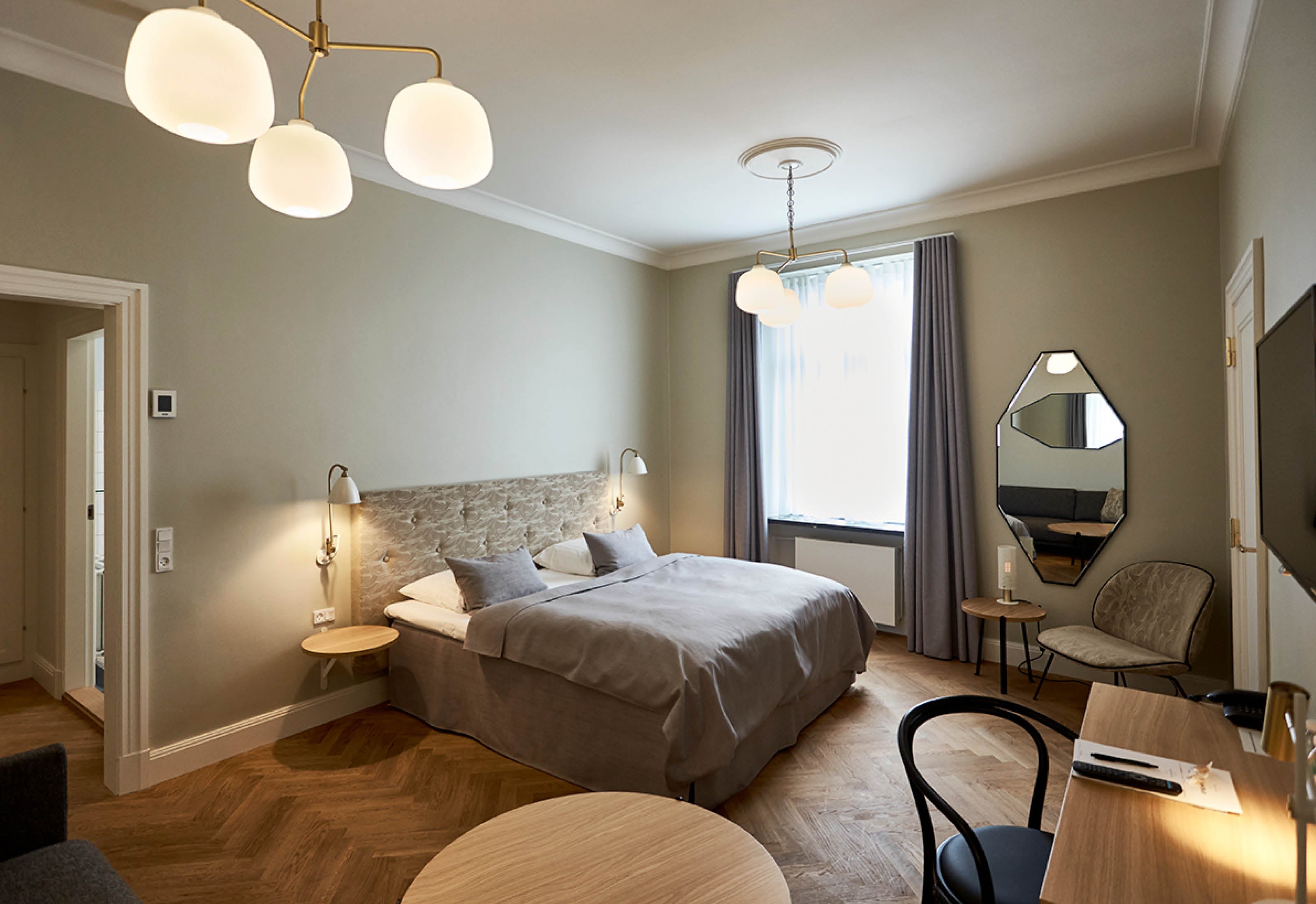 All rooms were renovated in 2016 and each has its own stylish charm with its different designs. A superior room has everything you need when you are on the move. The bed is 180 x 200 cm, and the room also contains a desk, chair and often a sofa. The decor is kept in calm shades, creating a relaxing atmosphere.