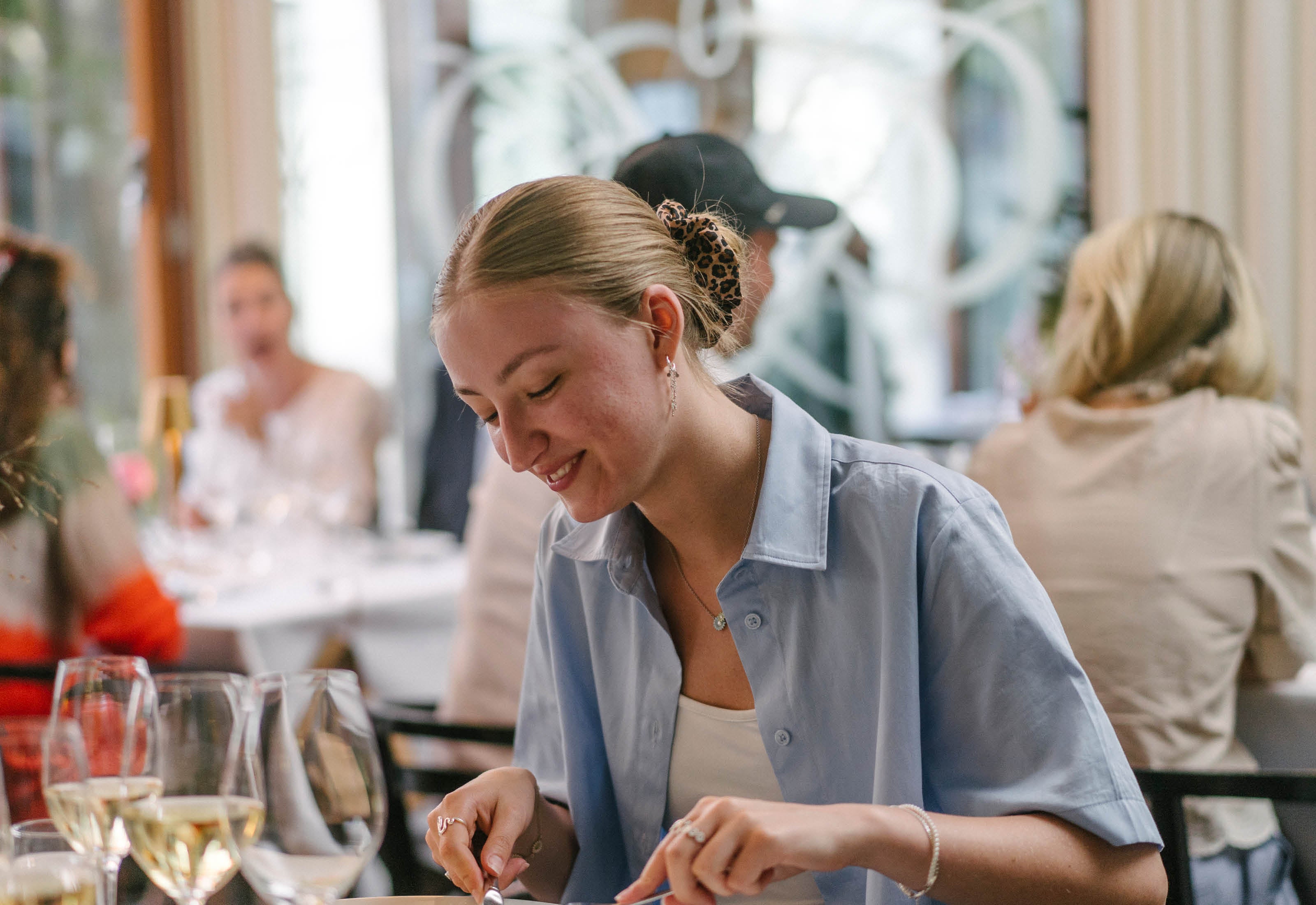 Kyllingesalat på smørristet franskbrød, asparges, Skagen Skinke og urter
