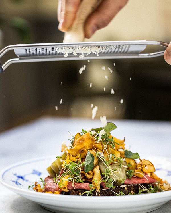 Klassisk tatar, æggeblomme, pickles og peberrod